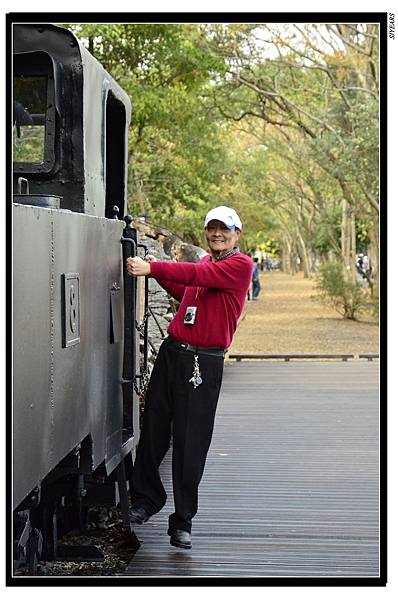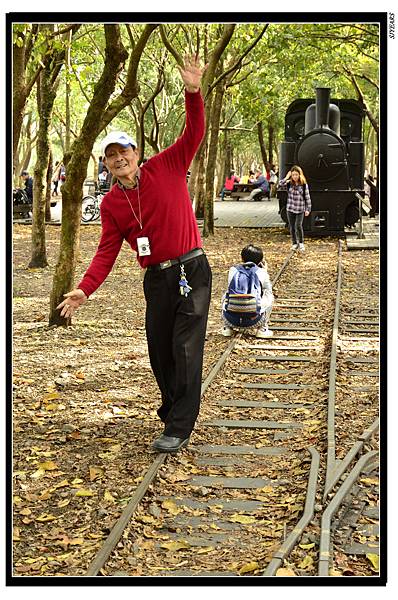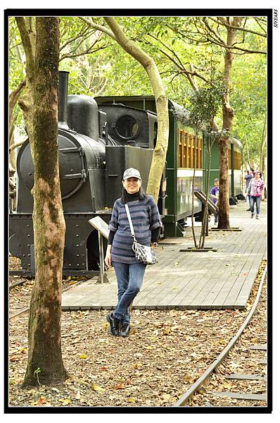 在車站與貯木池之間,重鋪了一段羅東森林鐵路,軌道上前後各放一輛老火車頭,一拖著客運車廂,一拖著巨粗木材, 反映了當年這條鐵路的任務,既做為貨運,也提供客運服務。