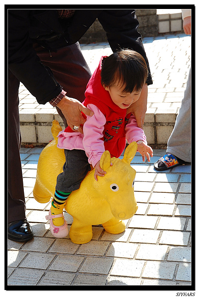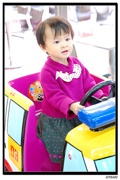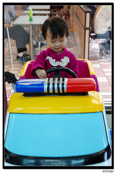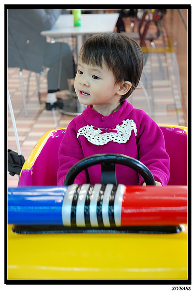 寶妹現在超愛坐車車的,早也坐、晚也坐,坐的捨不得回家,要她回家就鬧脾氣,老爸說,要保洪以後買一台給他坐,呵呵......